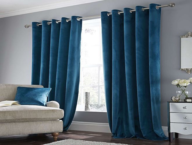 Бархат — очень плотный и приятный на ощупь материал. Он прекрасно защищает от солнечных лучей и способен заглушить звуки с улицы. Универсальность - одно из главных преимуществ ткани. В одном цвете можно сделать шторы и мебель.